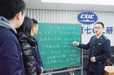 近日,国家税务总局无锡市滨湖区税务局成立个人所得税宣传青年突击队,走进辖区重点高新技术企业,“一对一”辅导新个税法。图为税务干部在向企业财务人员讲解个税新政。