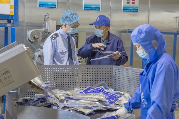 在海州区新坝镇可味源农产品深加工项目现场,工人们正在加工晶莹剔透的小黄鱼,经过清洗、分拣、腌制、装袋等工序,这些充溢着大海味道的产品即将发往各大商超,一派火热的繁忙景象。