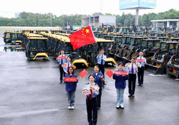 近日,徐州经济技术开发区税务局青年税干部走进先进制造业企业,开展“精准辅导促发展税企同心庆华诞”活动,送上为企业量身定制的税收优惠政策“礼包”。图为税务干部与徐工集团工程机械股份有限公司科技分公司财务人员共同庆祝祖国华诞。