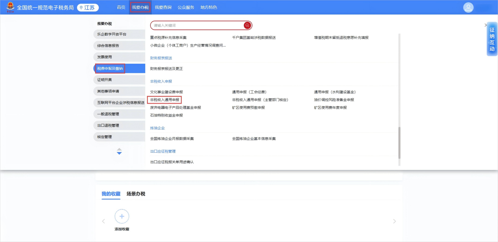 答:登录电子税务局后,依次点击【我要办税】-【税费申报及缴纳】-【非税收入通用申报】,通过此模块申报缴纳城镇垃圾处理费。