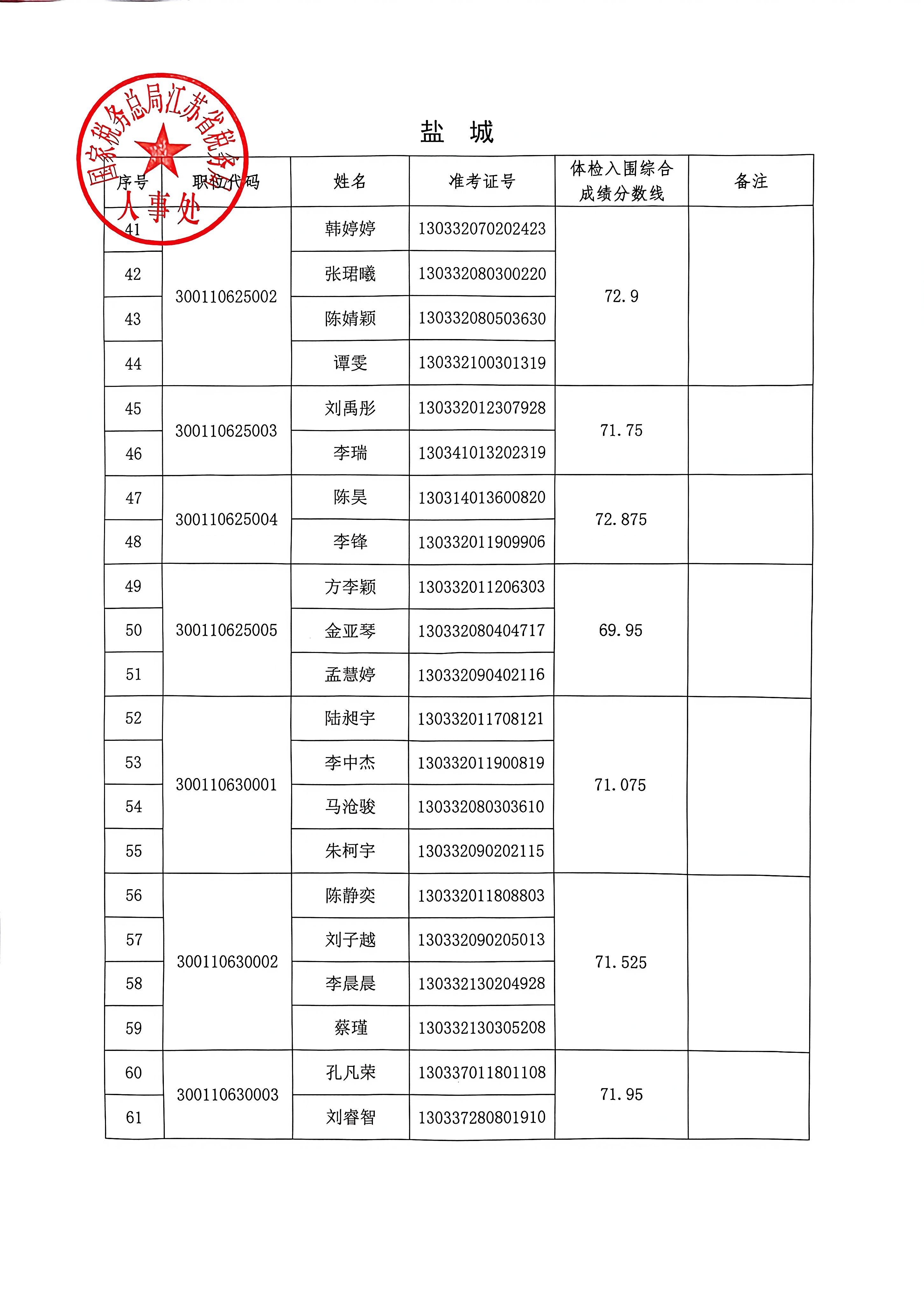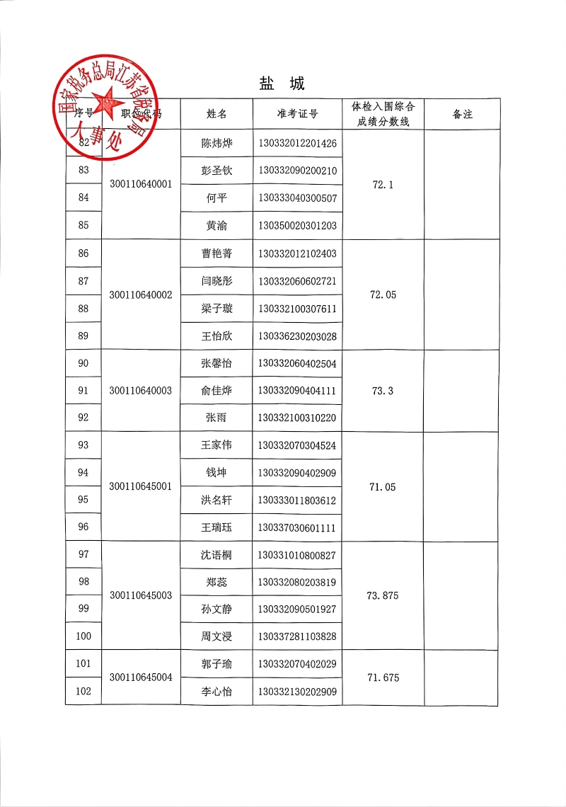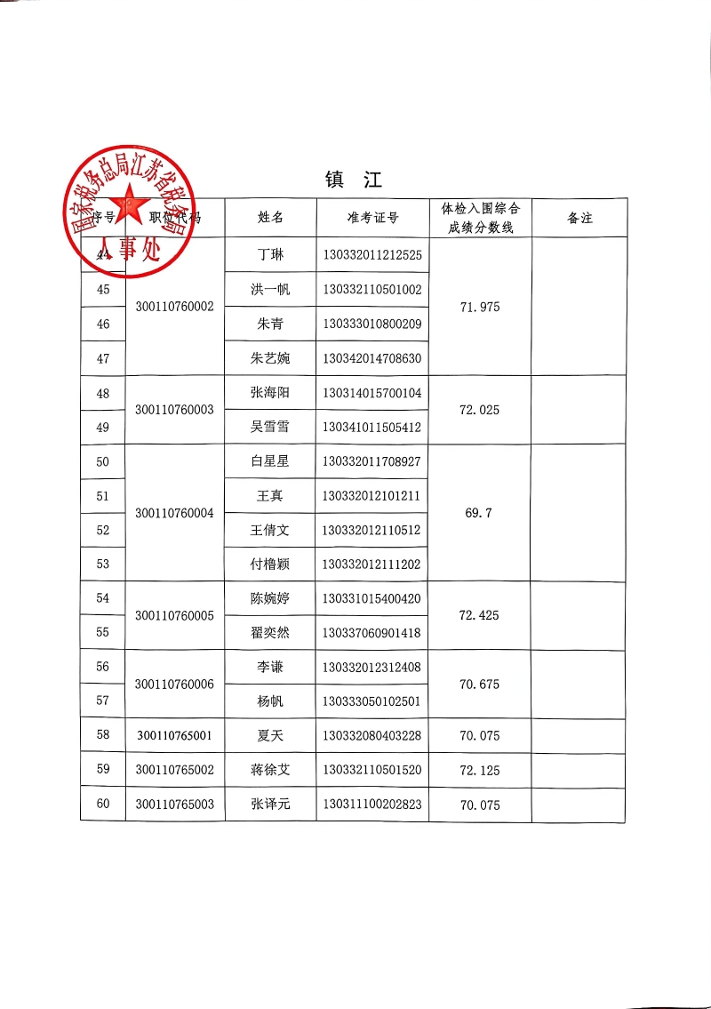 国家税务总局江苏省税务局2026年度考试录用公务员3月17日体检入围人员名单