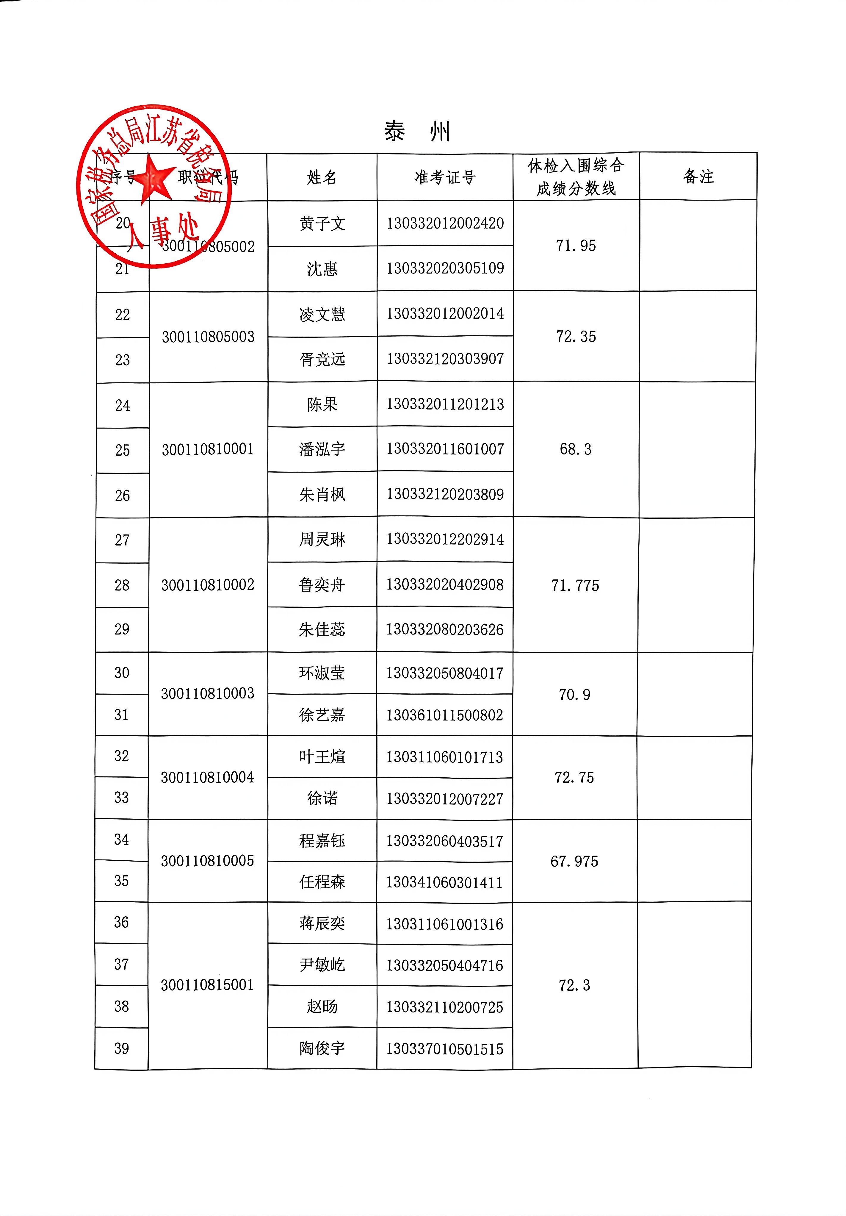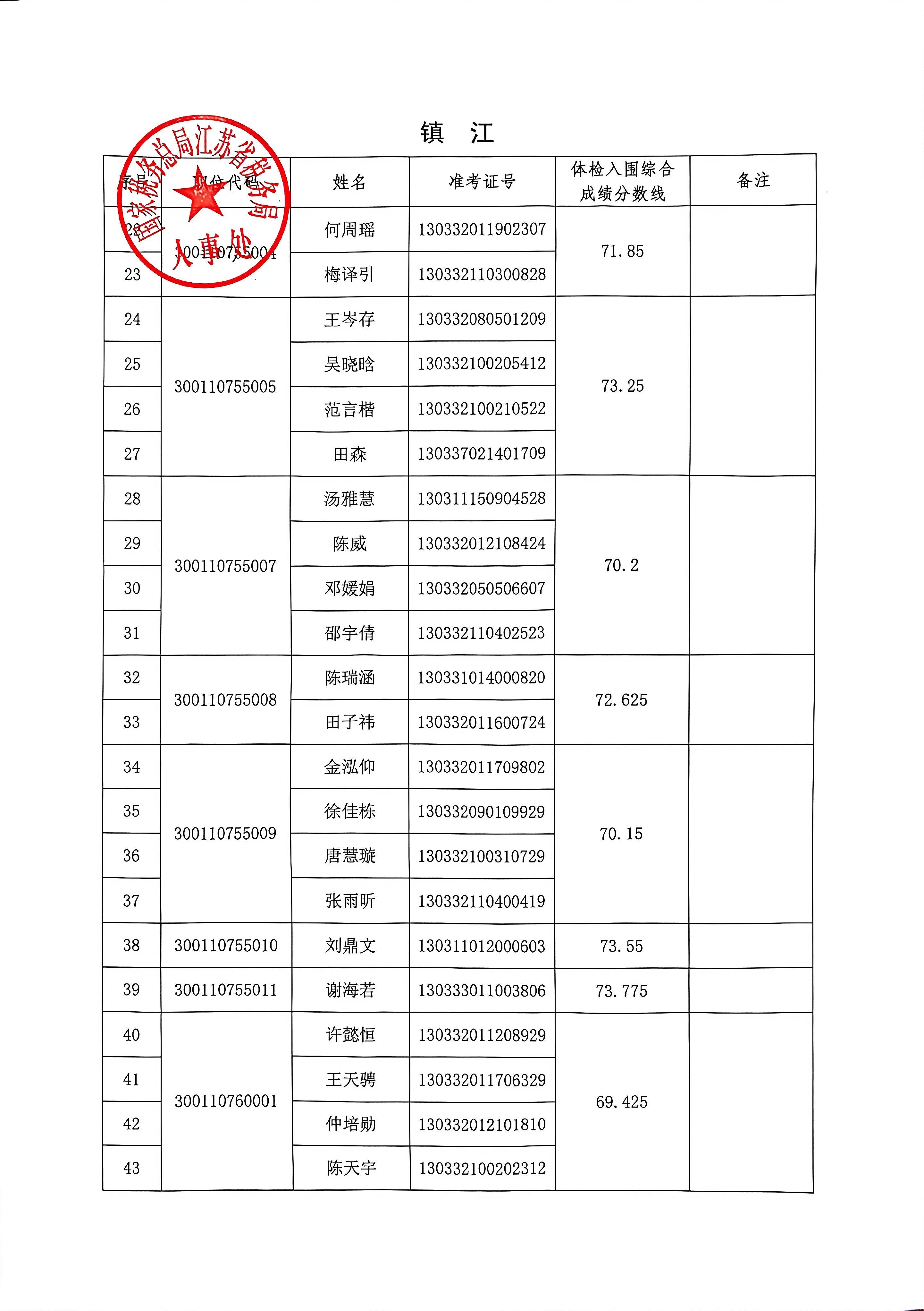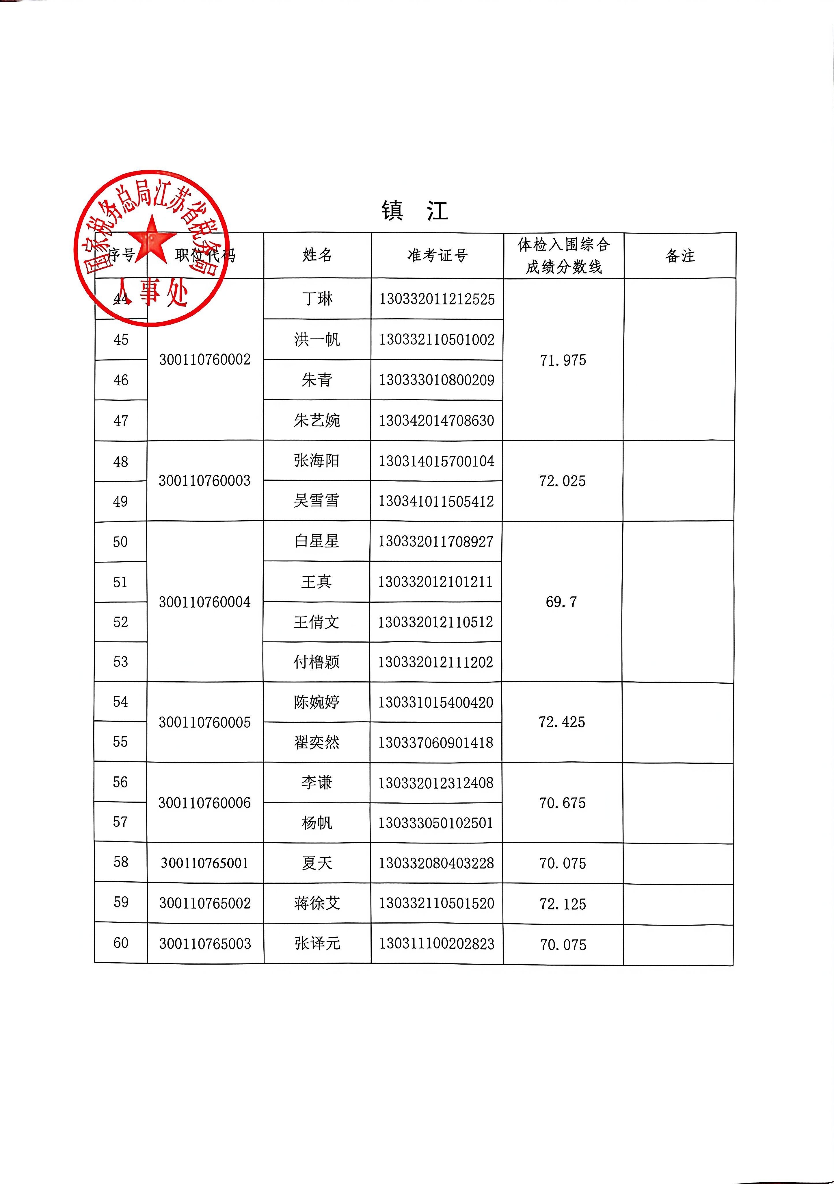 国家税务总局江苏省税务局2026年度考试录用公务员3月17日体检入围人员名单