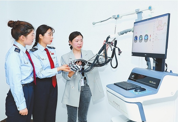 在丹阳慧创医疗设备有限公司,记者通过全球首台获医疗器械注册证的超100通道近红外脑功能成像设备,亲身体验了“用光读脑”的科技魅力。据悉,这台由企业自主研发的脑机接口设备,已升级至157通道。