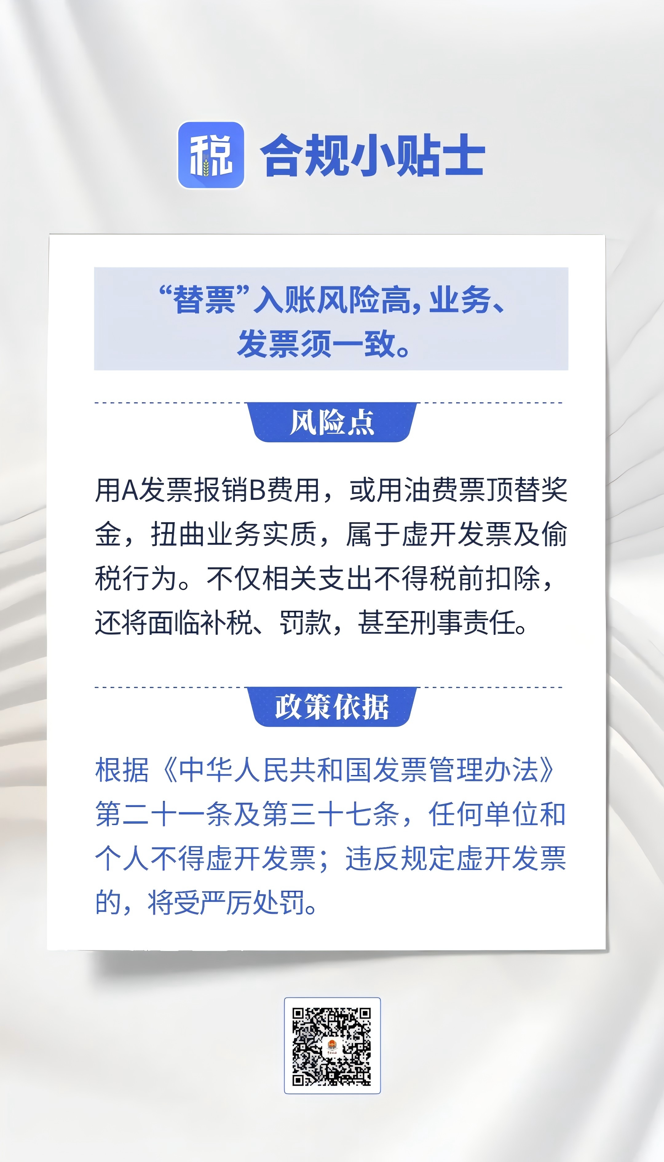 【图解】合规小贴士|“替票”入账风险高,业务、发票须一致